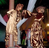 Minęły dwa miesiące i po raz kolejny w dniach 09-16.01.2006r. 10 - osobowa Grupa Artystyczna MIM NET, w nieco zmienionym składzie, z bardzo zróżnicowanymi i kolorowymi postaciami – żywymi pomnikami (Living Statue) - ponownie zagościła na festiwalu, w pięknej stolicy Kataru - Doha. „Eid Al Adha Festival, 2006” - celebrujący jedno z dwóch głównych świąt muzułmańskich, który odbywa się w "Dhul-Hijjah" - ostatnim miesiącu islamskiego kalendarza. Wówczas to miliony muzułmanów z całego świata pielgrzymują do Mekki, aby oddać cześć Allahowi. Jest to bardzo rodzinne święto, czas wielkiej radości, jednoczące specjalnymi modlitwami, odpowiednio na ten radosny czas z przygotowywanymi potrawami, odwiedzaniem rodziny, znajomych. Wyjątkowy czas dla dzieci, które z tej okazji obdarowywane są prezentami. „Eid Al Adha Festival, 2006” zorganizowany z ogromnym rozmachem, przepychem, niesamowitą różnorodnością występujących grup artystów. Publiczność mogła podziwiać wszelkiej maści szczudlarzy, magików, klaunów, cyrkowców, akrobatów, pokazy ogniowe, żywe maskotki bohaterów bajek znanych na całym świecie, zarówno kultury wschodniej, jak i zachodniej, krótkie widowiska teatralne, niesamowite budowle z piasku, interaktywną wystawą kosmiczną, dmuchane budowle ku uciesze dzieci. Wyjątkowych doznań dostarczała różnorodność spotkań z kulturą Kataru, wczorajszą i dzisiejszą. Z jej tradycyjnymi obrządkami, zwyczajami , zaślubinami, tańcem, śpiewem, muzyką, np.: multimedialną poezją arabską – wspomaganą muzyką orientalną wraz z pokazem laserowym (!), pokazami koni arabskich, wielbłądów, sokołów i dużo, dużo więcej. Prawdziwym hitem tego festiwalu była wybudowana skocznia narciarska z prawdziwym śniegiem i pokazem akrobatycznych skoków narciarskich i snowboard’owych, a także zjeżdżalnia śnieżna dla wszystkich dużych i małych oraz możliwość cieszenia się śniegiem na pustyni, budowania igloo, lepienia bałwana, rzucania śnieżkami itp. To wszystko przy temperaturze otoczenia ponad 20°C (!). Całość zwieńczona wspaniałymi pokazami fajerwerków przy niesamowitym nagłośnieniu muzycznym. Kostiumy do wybranych postaci przygotowała tak jak poprzednio - znana projektantka Emilia Obłękowska (www.bodypainting.waw.pl), z wyjątkiem Mumii (realizacja - Sarenka). | |||||